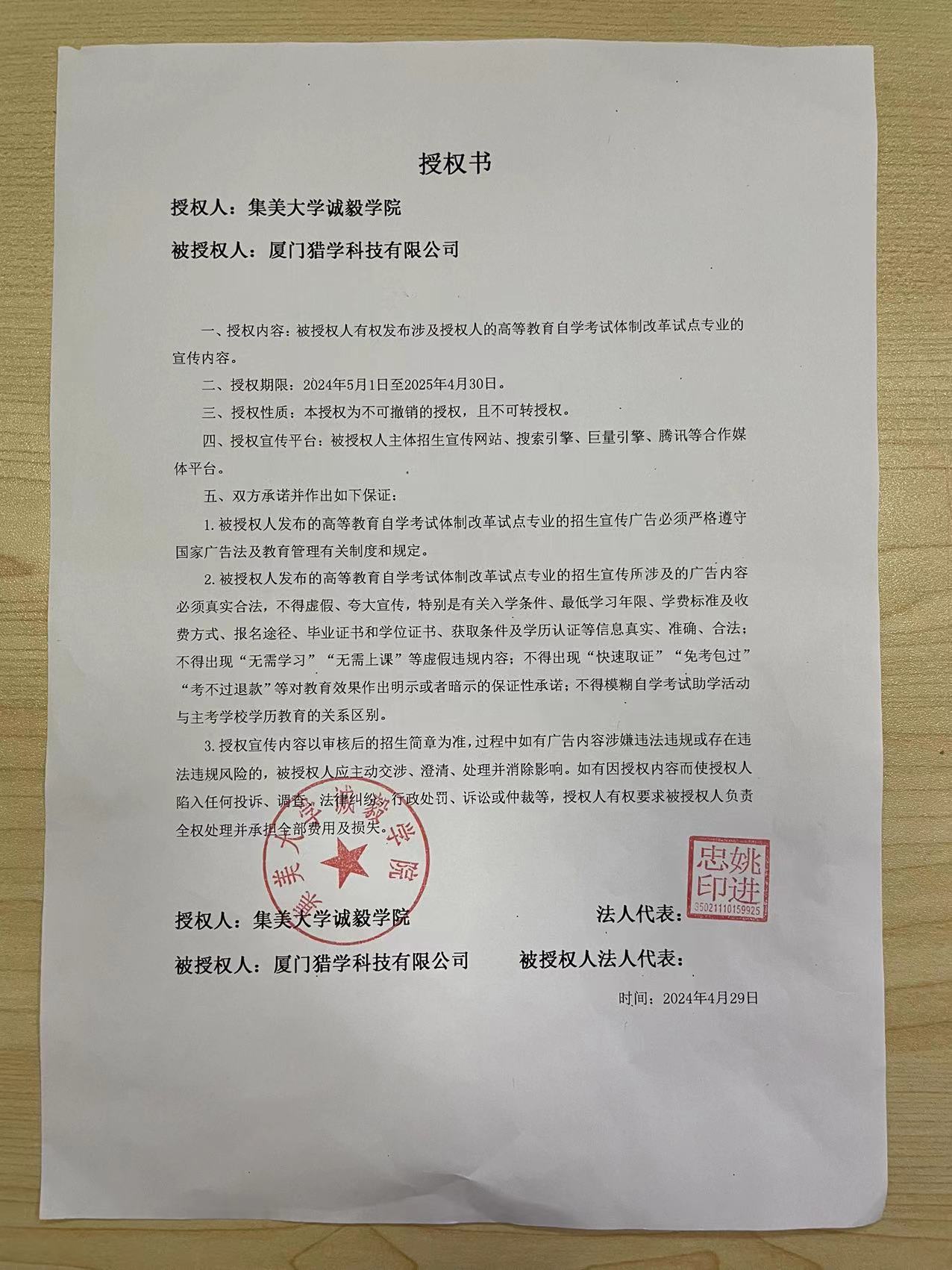 學生入學后,學校根據各專業開考計劃進行教學安排,組織學生參加考試。學生通過國家或省統一組織的考試,成績合格者,將獲得相應主考學校集美大學、集美大學誠毅學院、華僑大學和省自考委聯合頒發、全國統一印制、教育部電子注冊的大?;虮究飘厴I證書,國家承認學歷;符合相應主考學校授予成人高等教育本科畢業生學士學位相關規定的條件,可獲得相應主考學校成人高等教育本科學士學位。對于國家或省自考委規定的考試課程尚未全部合格者,發給相關的學業證明書。